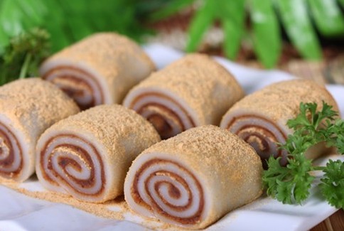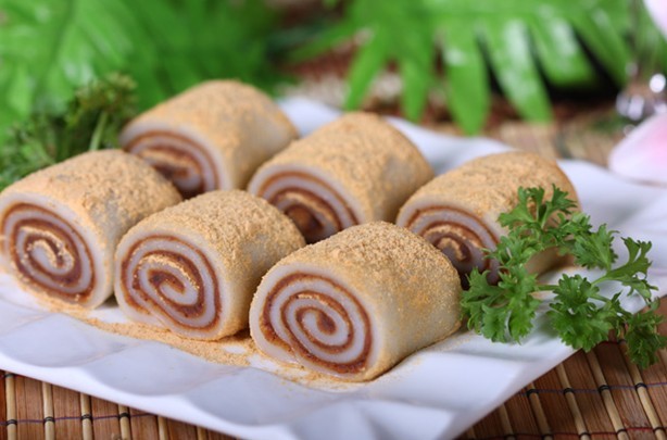 北京龍山街道商網(wǎng)訊:“北京驢打滾”是用黃米夾餡卷成的長(zhǎng)卷,因卷下鋪黃豆面,吃時(shí)將長(zhǎng)卷滾上豆面,樣子頗似驢兒打滾,因此得名!绑H打滾”的原料有大黃米面、黃豆面、澄沙、白糖、香油、桂花、青紅絲和瓜仁。它的制作分為制坯、和餡、成型三道工序。做好的“驢打滾”外層粘滿豆面,呈金黃色,豆香餡甜,入口綿軟,別具風(fēng)味,是老少皆宜的傳統(tǒng)風(fēng)味小吃。